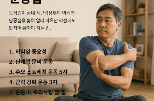 가벼운 등산(평지 위주)이나 실내 자전거 같은 저충격 유산소 운동을 권장하며, 하루 30분 이상 꾸준히 실시합니다.