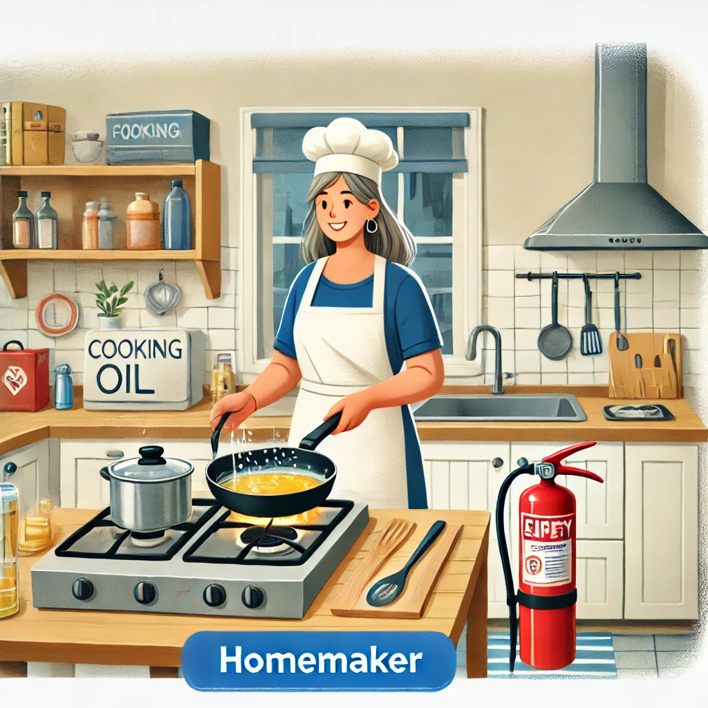 - 불을 끄기 위한 적절한 방법: 물을 절대 사용하지 말아야 합니다. 물을 사용하면 기름과 반응하여 불꽃이 더 크게 퍼질 수 있습니다. 대신 젖은 수건이나 소화포를 사용하여 불을 덮고 산소 공급을 차단하는 것이 중요합니다.