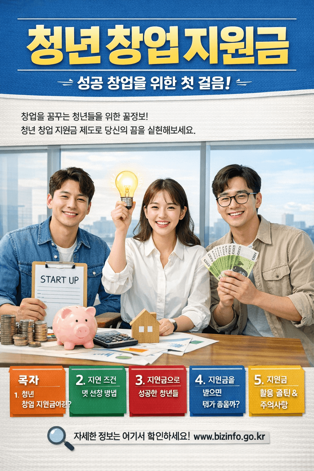 청년 창업 지원금은 “받으면 끝”이 아니라, 받고 나서 실전 운영의 속도를 붙이기 위한 연료에 가깝습니다. 본인 단계에 맞는 트랙을 고르고, 증빙 가능한 실행을 먼저 쌓고, 선정 후에는 규정에 맞는 집행과 성과를 연결해 나가시면, 지원금은 단순한 돈이 아니라 다음 기회를 여는 레버리지가 됩니다. 그리고 이미 만들어 드린 대표 이미지는 상단에 그대로 사용하셔도 블로그 썸네일로 충분히 활용 가능하십니다.
