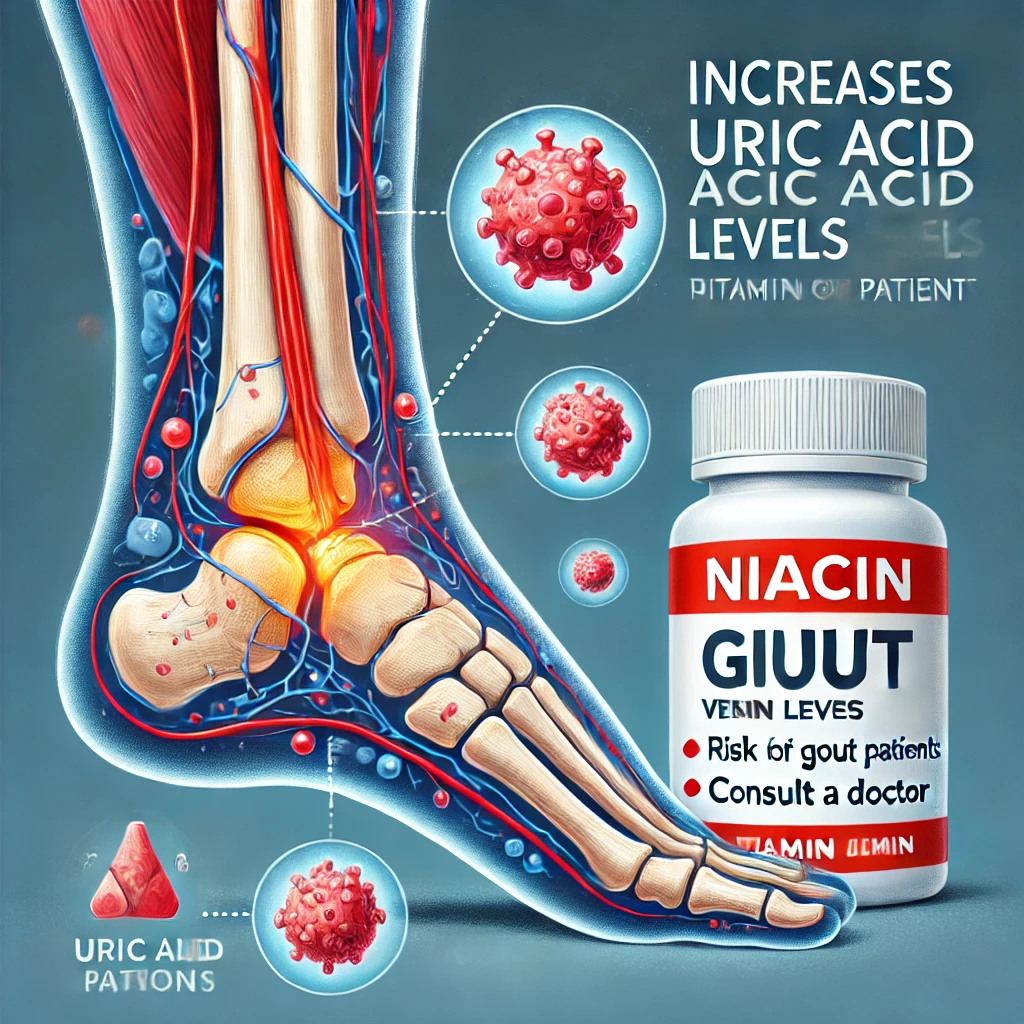 나이아신은 체내 요산 농도를 증가시킬 수 있어 통풍 환자에게는 주의가 필요한 성분입니다. 나이아신이 통풍에 미치는 주요 영향은 다음과 같습니다.