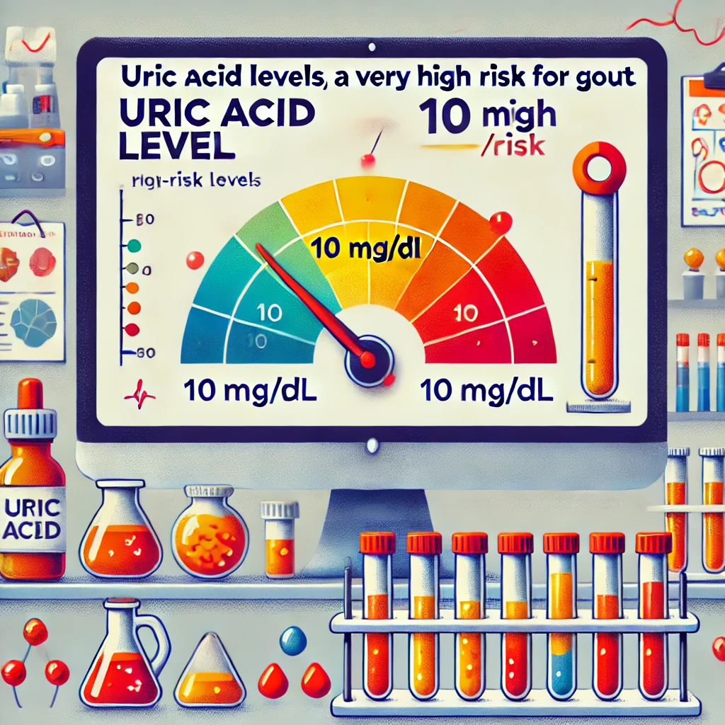요산 수치가 10 mg/dL로 측정될 경우, 이는 여러 가지 건강 문제를 유발할 수 있습니다.