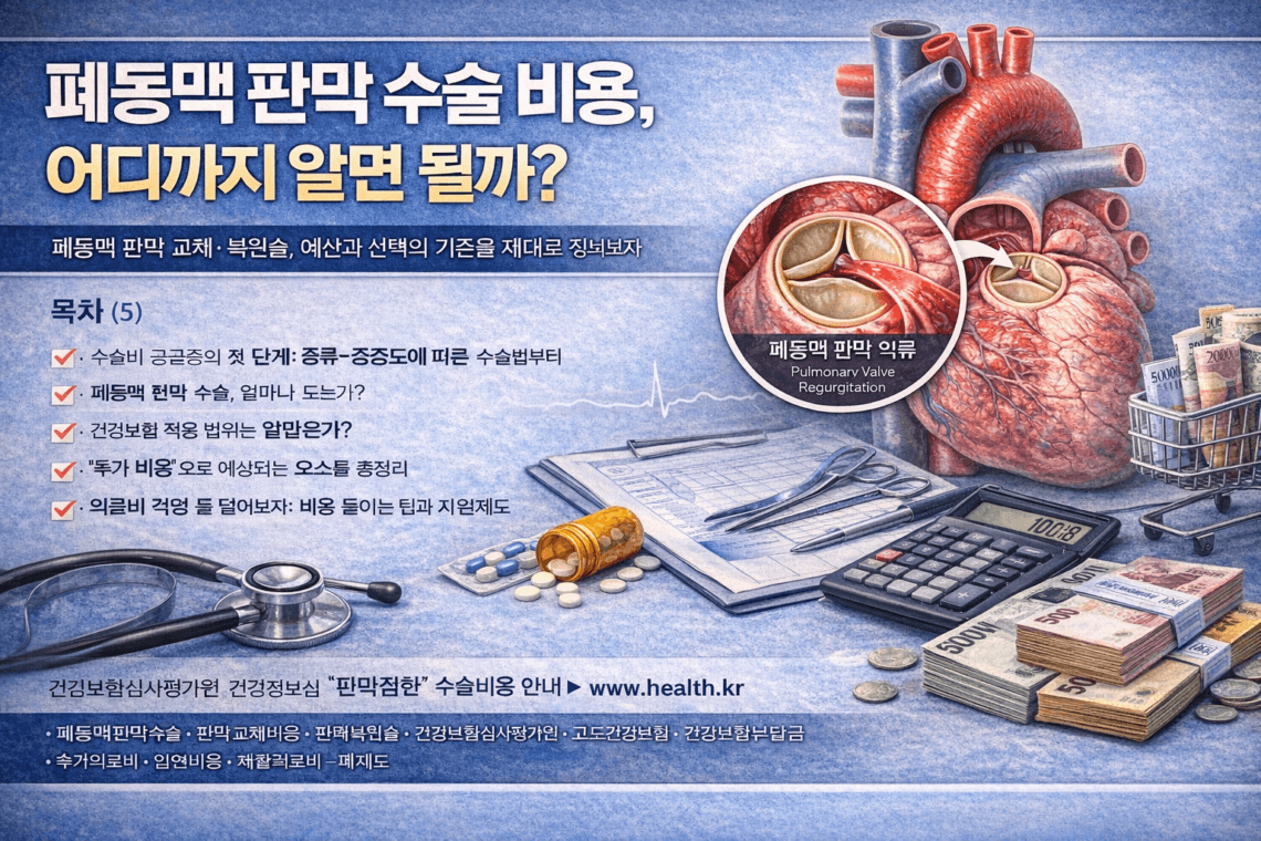 폐동맥 판막 수술 비용을 검색하면, 숫자가 먼저 눈에 들어오고 그다음엔 걱정이 밀려옵니다. “심장 수술이면 무조건 수천만 원 아닌가요?”, “입원하면 중환자실도 가야 한다던데요”, “보험이 된다 해도 도대체 내가 내는 돈은 얼마죠?” 같은 질문이 꼬리에 꼬리를 물고 이어지는데, 사실 의료비는 ‘정답 하나’가 아니라 구성요소를 쪼개서 보는 순간 갑자기 현실적인 범위로 정리되는 계산식에 가깝습니다.